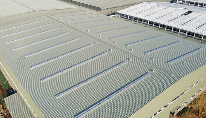 日月星環境工程(大連)有限公司成立于2018年,專注于工業廠房屋面及采光天窗設計、制造與安裝的優秀企業。公司擁有一支經驗豐富、技術精湛的專業團隊,致力于為客戶提供高效、環保、可靠的解決方案。智能化、系統化、 領先的科技應用使我們的產品大大領先于行業企業。 公司主要產品包括各種類型的工業廠房屋面、采光天窗,以及相關配套設施。產品具有優異的耐候性能、防水性能、抗風雪能力以及良好的采光效果,可廣泛應用于汽車、物流、煙草、電池、石油、 化工、電力、電子、食品等眾多行業。憑借著先進的生產設備與技術實力,公司在業界樹立了良好的口碑。